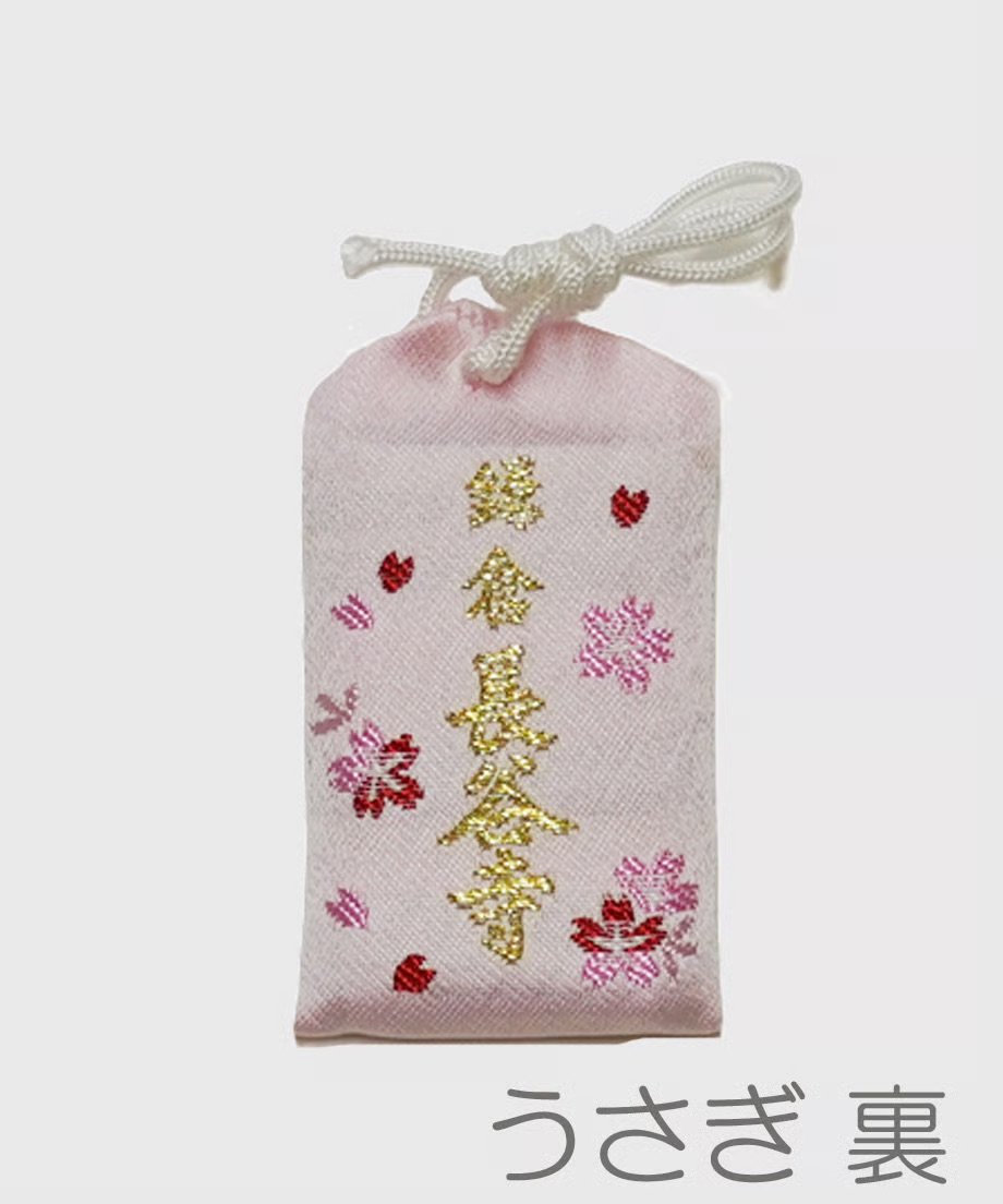 This beautiful omamori is a comprehensive charm. It offers great protection from Kannon Bodhisattva. The amulet has a soft pink color. It features a graceful rabbit or cherry blossoms. The rabbit is a symbol of luck in Japan. This charm brings good health and family safety. It also helps with recovery from illness. It is great for traffic safety. The amulet helps fulfill all your wishes.